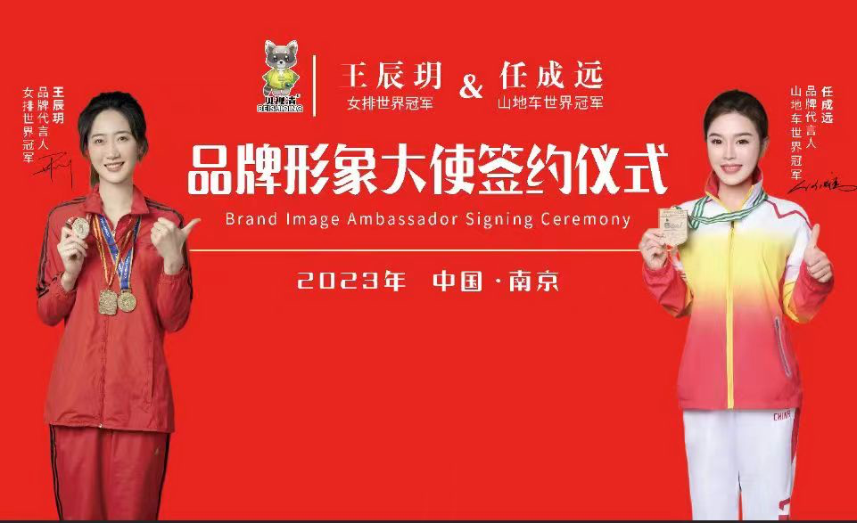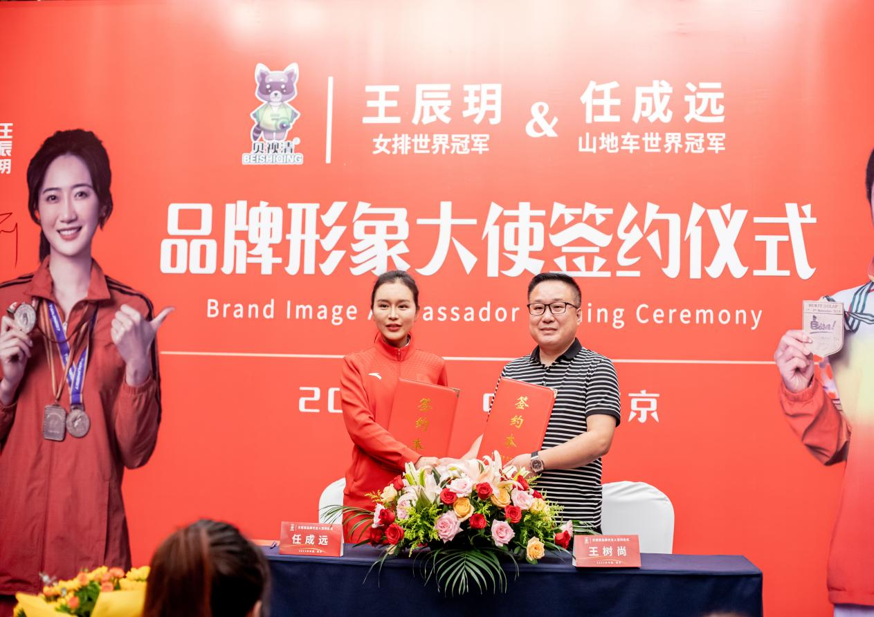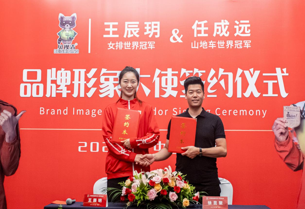 2. 2023年8月6日贝视清在六朝古都的南京,同时签约女排世界冠军王辰玥&山地车世界冠军任成远 为品牌形象大使,再次为品牌进行赋能,打造冠军品质、铸就冠军品牌!